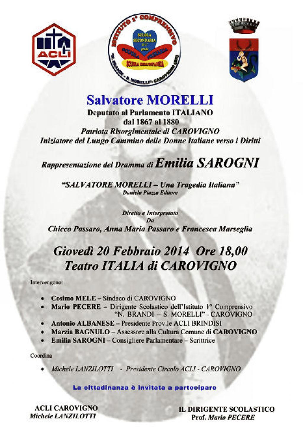 Giovedì 20 febbraio 2014 ore 18:00, Teatro Italia a Carovigno.